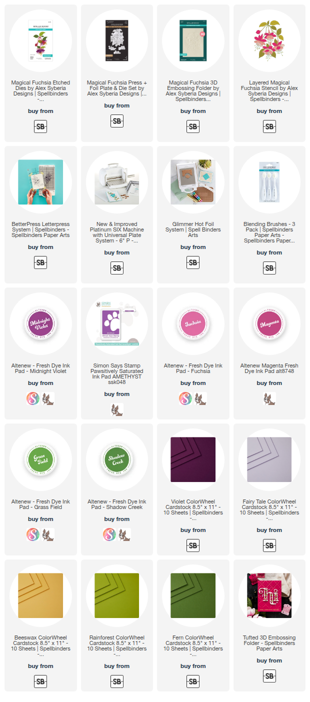 Be sure to check out the entire Magical Fuchsia Collection! Each item is also available to purchase separately at the Spellbinders' website.
