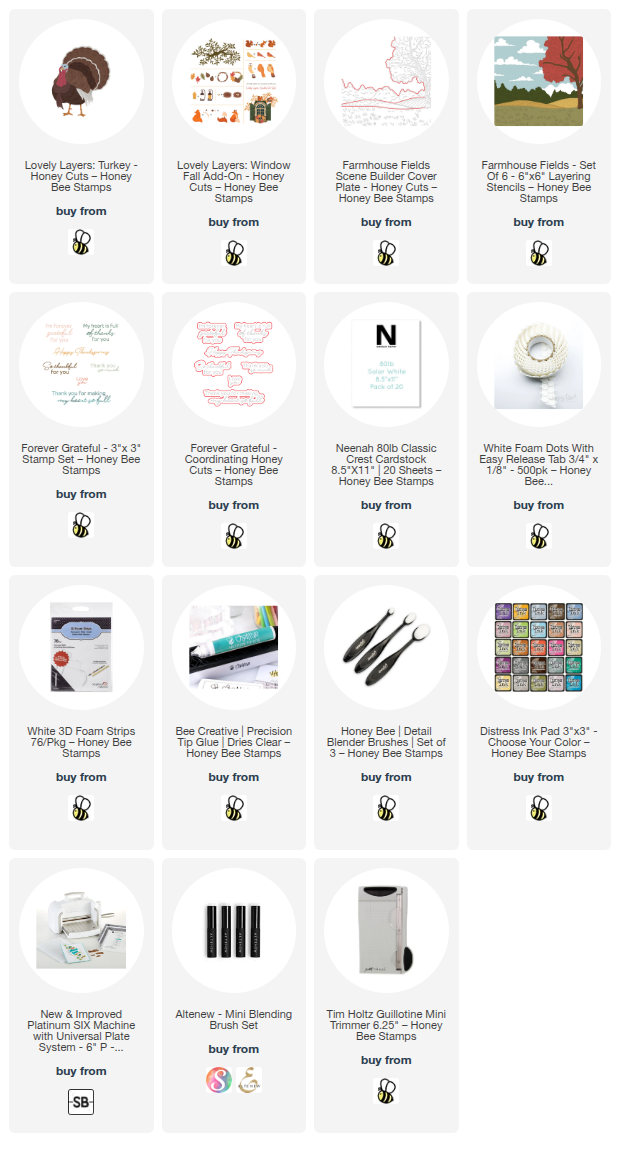 Hello crafty friends!! Today I'm sharing my card featuring a few of Honey Bee Stamps' new Hello Harvest release products along with another awesome older product! I've used the Lovely Layers: Turkey to create a Thanksgiving card to give to a family member. Read on for all of the details.
